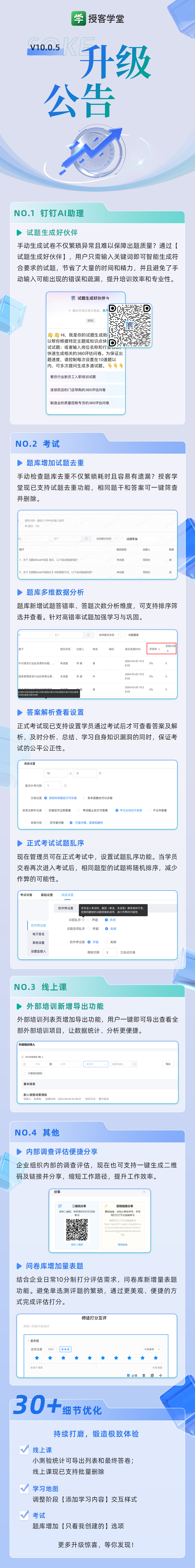 升级公告丨试题生成好伙伴、试题去重、量表题……懂培训更专业,当然授客学堂!