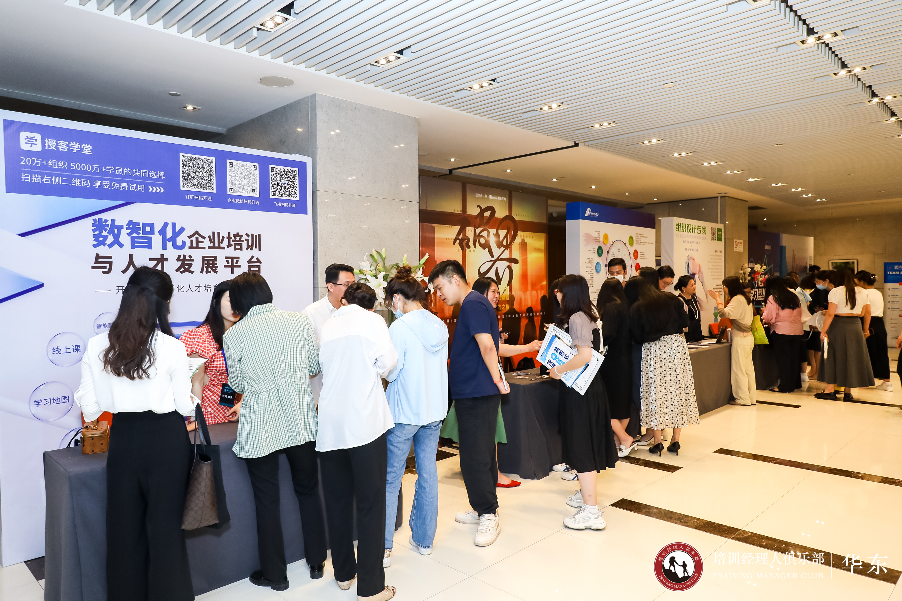 在活动过程中,授客学堂在大会展区向参与嘉宾展示了基于业务赋能的数字化学习技术与产品,包括以“SaaS平台+内容供应链+运营服务”为核心的人才培养、发展的数字化整体解决方案,吸引现场大量观众驻足交流。
