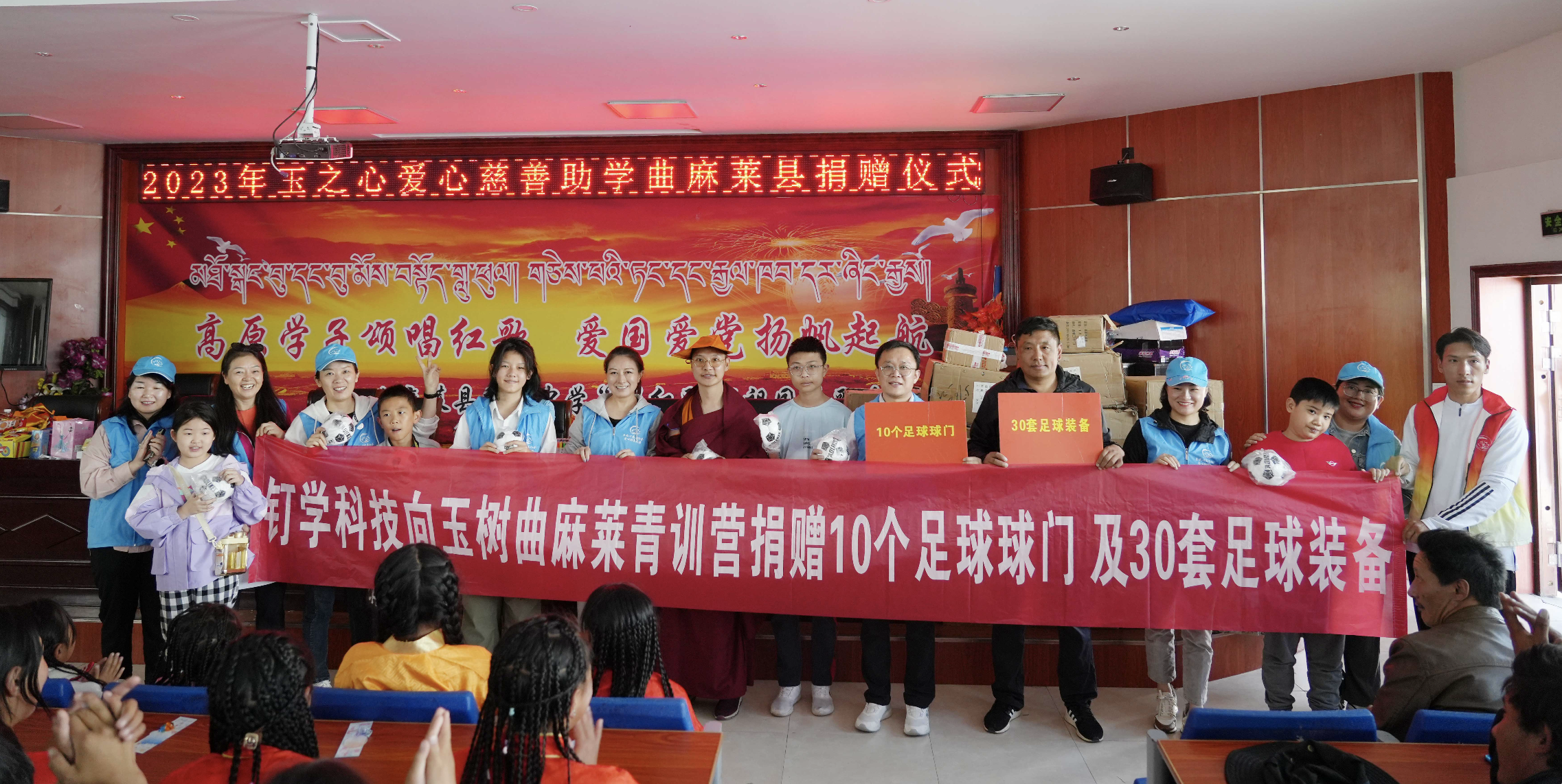 一个足球,一群伙伴,一片绿茵,不仅圆了少年们心中的梦,也让大山外面的人更加了解玉树、了解曲麻莱。而这些崭新的足球训练装备,正是他们最需要的。在捐赠仪式上,孩子们用热情的表演表达了他们的感谢之情。