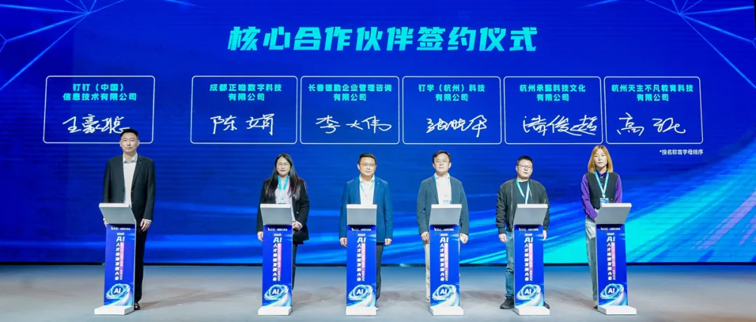 钉学(杭州)科技有限公司(以下简称“钉学科技”)作为联合发布单位受邀出席大会,并参与钉钉核心合作伙伴签约仪式。