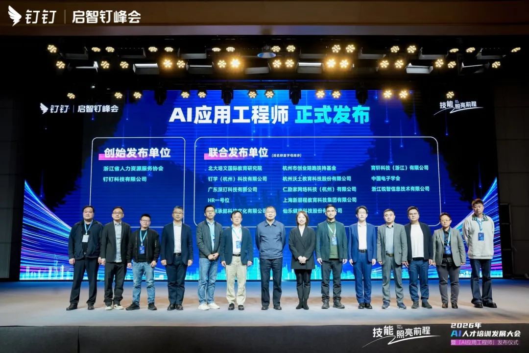 11月25日,由浙江省人力资源服务协会与钉钉联合主办的“AI人才培训发展大会”在杭州成功召开,会上重磅发布《AI应用工程师》学考认证体系及“百万AI应用工程师培养计划”。