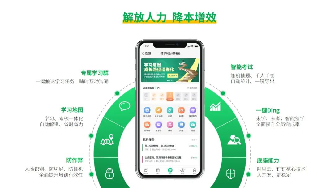 围绕数智化企业培训和人才发展,钉学科技为全球客户提供SaaS工具+内容+运营服务,帮助企业解决人才复制难、专业能力差、培养周期长、业绩提升慢等痛点,为组织战略落地、关键岗位业务支撑,提供智能高效、业培一体的人才发展解决方案,完成高绩效人才的复制和快速培养,以企业人才培养的数字化升级驱动组织能效提升。