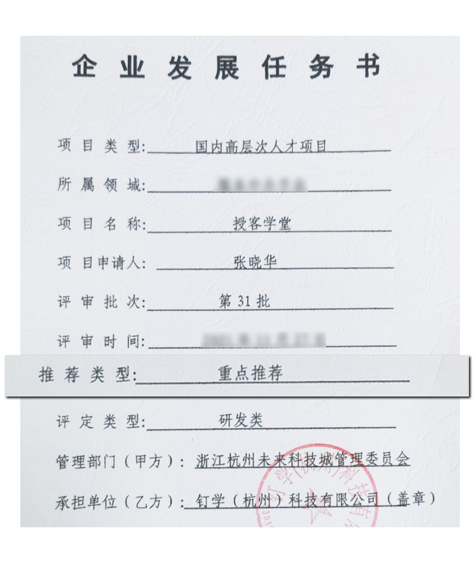 此前,授客学堂荣获“杭州未来科技城-海内外高层次人才创新创业【重点推荐项目】”。该项目汇聚国内外优秀人才,围绕电子信息、生物医药、新材料新能源、装备制造、软件与创意、服务中介平台六大门类开展路演评审。