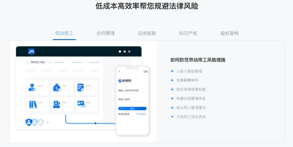法保网通过利用互联网+的思维,以组织数字化、客户数字化、产品数字化、营销数字化的转型升级,解决企业法律层面痛点,逐步建立起全新的法律服务生态,让专业、普惠的企业法律服务触手可及。